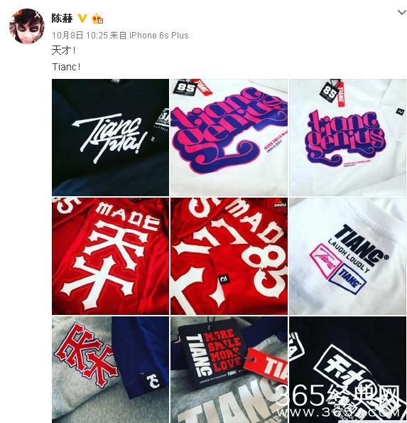 言归正传,近日,一直自诩为天才猪的陈赫在微博上就秀出自家品牌的衣服,每件衣服上都有着大写的两个字:天才!