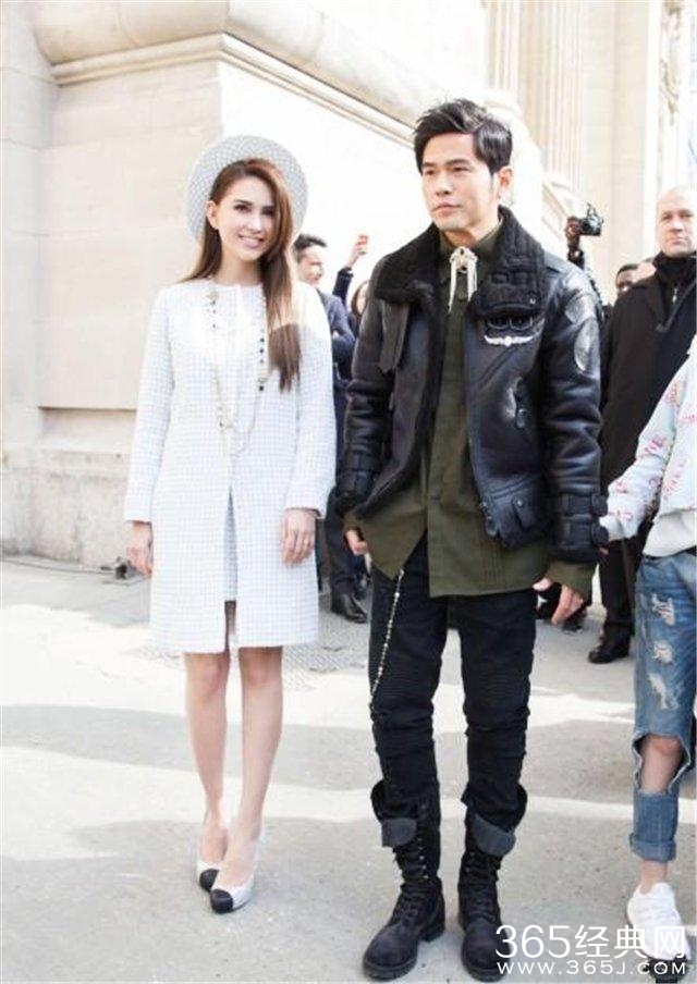 昆凌抹胸,杰伦黑色衬衣密不透风