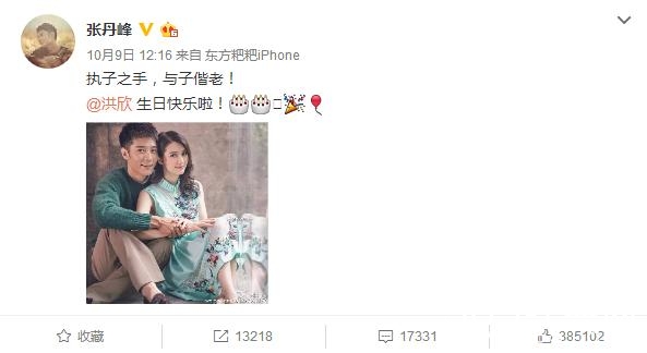 张丹峰在妻子生日之际还特意送上祝福:执子之手,与子偕老!