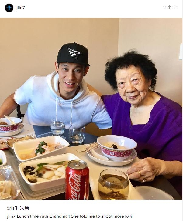 林书豪更新了自己的Instagram,晒出一张与奶奶共进午餐的合影,并配文写到: