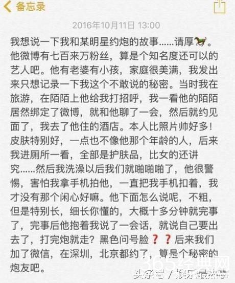 据消息称,“L姓男星约炮女模”的爆料来自“约炮女模”,她指出和自己约炮的男明星已婚,微博粉丝有692万,有妻子有儿子。他们通过“约炮神器”——陌陌认识,然后当即一拍即合,在某酒店约会见面,发生了不该发生的事。事情过后,一拍两散,男星对她爱理不理。这让她非常气愤,决定把此事爆出予以报复。