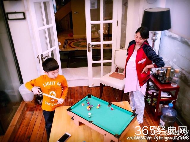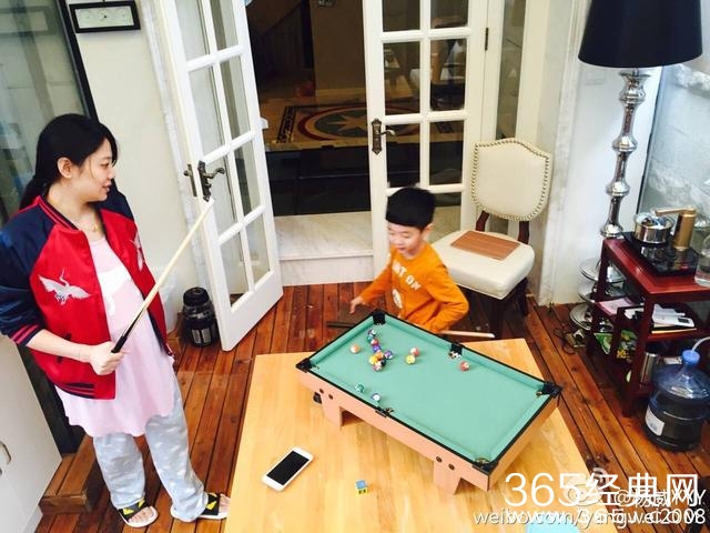 15日早晨,杨威微博晒照,杨云挺孕肚在家教杨阳羊打台球,温馨有爱,聪明的杨阳羊很快就学会了。