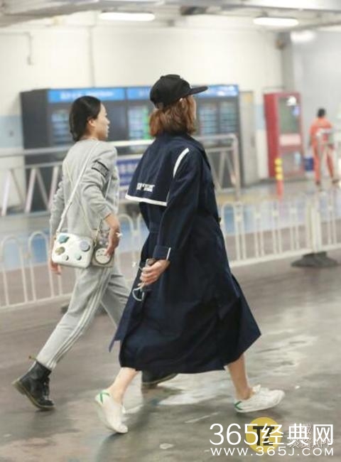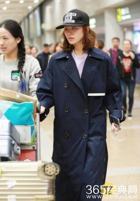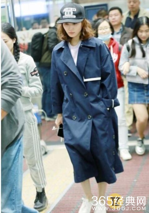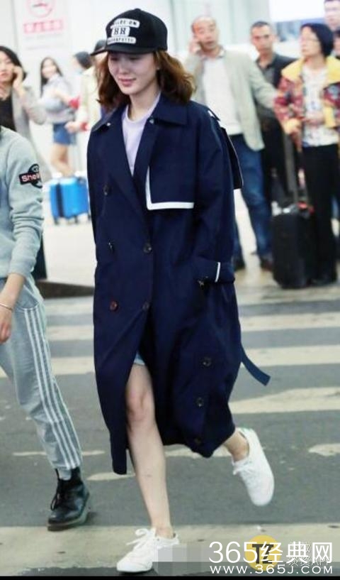宽大的风衣就像一件硕大的大袍子,让刘诗诗看着非常娇小,衣服不是很合体,而且大风衣下面还配着一条牛仔热裤