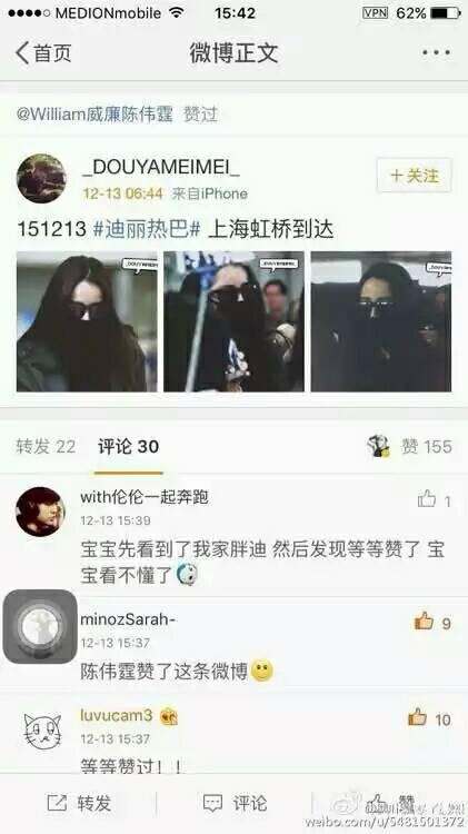 陈伟霆点赞的那条是迪丽热巴的机场饭拍,也就是说如果不是专门搜索了迪丽热巴的名字是根本看不到的,而且被粉丝发现之后又赶快取消了。