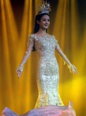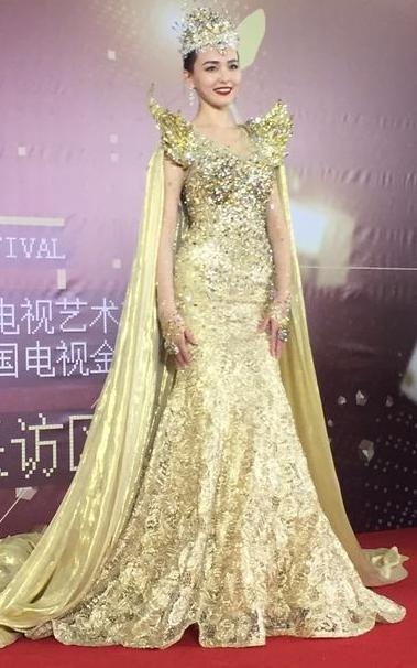 赵丽颖一袭浅金色礼服,在庄重中增显了几分清新的感觉。尤其是鱼尾的设计,更是凸显了赵丽颖S型曲线。