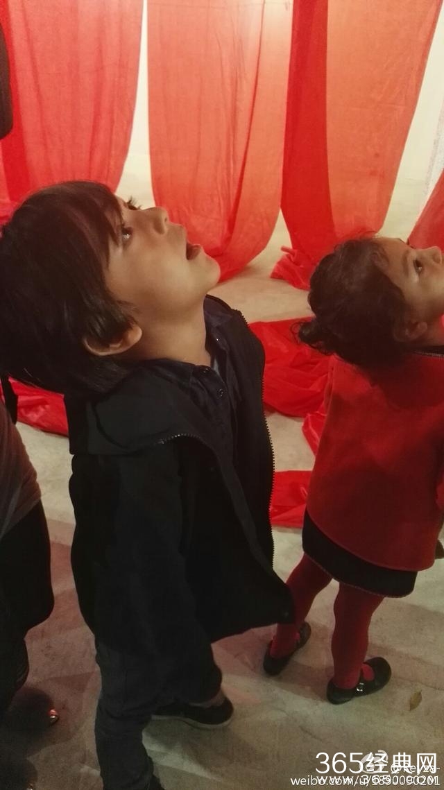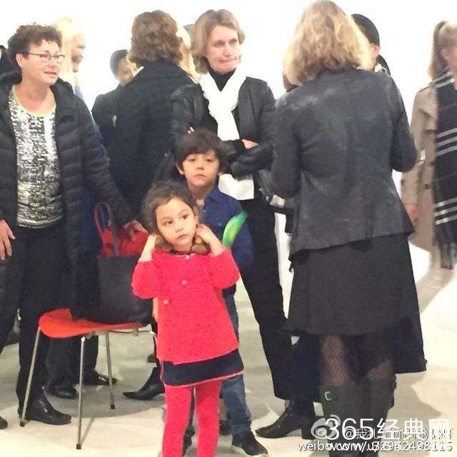 诺一一身休闲打扮,霓娜则身穿一身女儿红,两个混血宝贝看展览看的聚精会神。