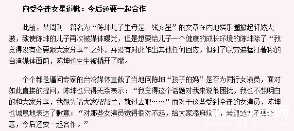 之后陈坤还非常绅士地对所有这些受牵连的女星道了歉。