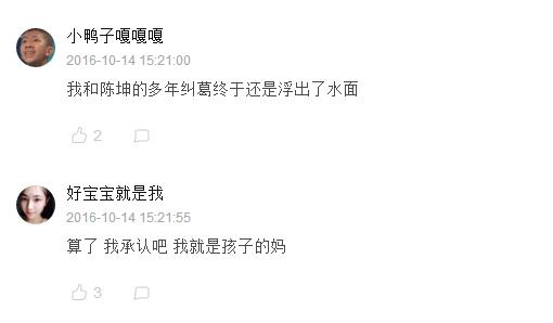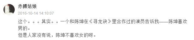 这位网友的帖子一出,就在网上引起了许多关注,大家纷纷留言称其推断“非常靠谱”。而陈坤在这位网友关于此事的微博后留言澄清道:“你说是就是啊,我说不是!”