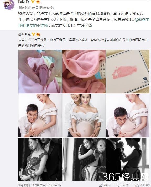 之前“安陵容安小主”的扮演者陶欣然和圈内男友何建泽也拥有了自己的小公主,但偏偏有一些观众把戏内情绪带入戏外,对其女儿恶意中伤,陶欣然的做法也是直接又有力,直接在微博上骂了回去网友们纷纷评论力挺陶昕然,指责该网友说话不负责:“最忍不了这种诅咒别人家人的。”“这人有病吧?”