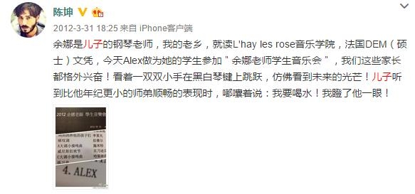 陈坤的这本书写于2010年到2011年间,那么他的儿子应该出生于2001年或2002年,陈坤大学毕业是2000年,在2001年就有了孩子,那极有可能女友是大学同学,而何琳的确是他的大学同学。