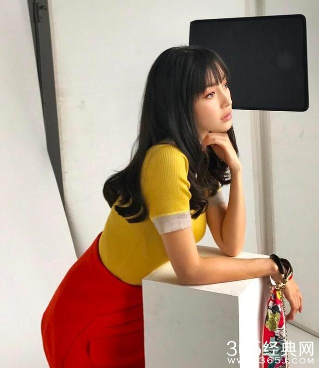 近日,Angelababy拍摄广告花絮曝光,黄色条纹上衣搭配红色短裤,新剪的齐刘海卷发,妩媚动人