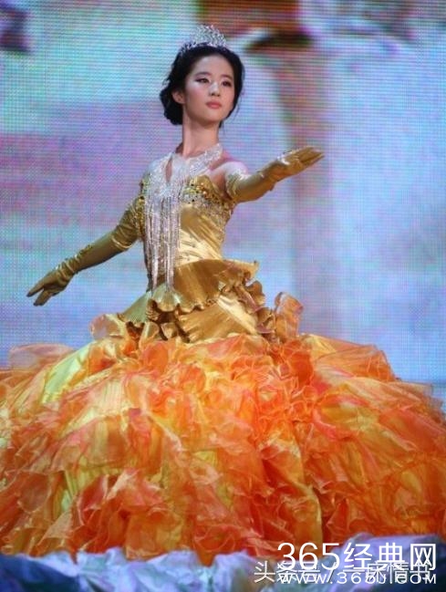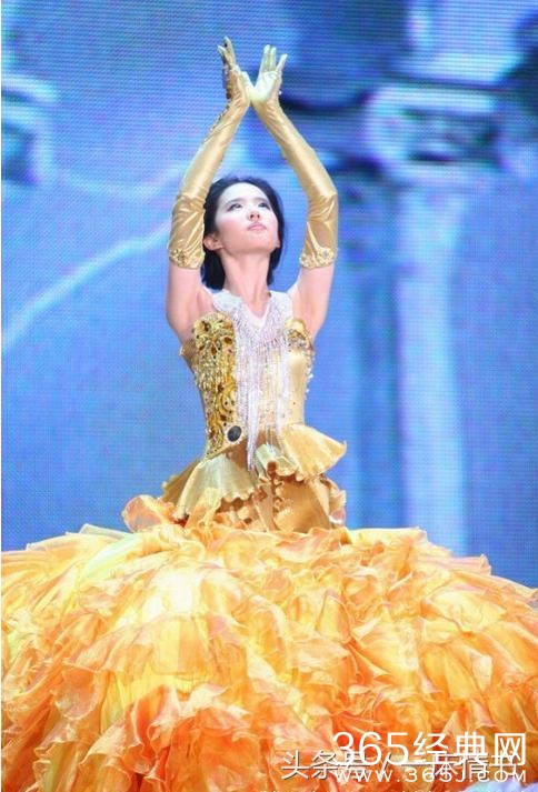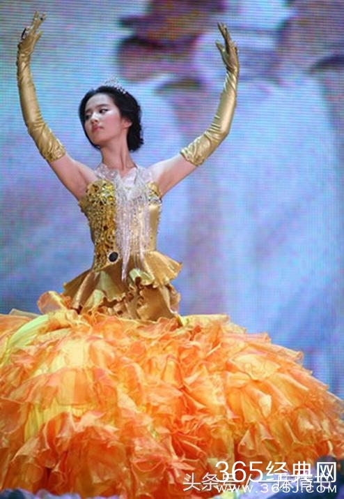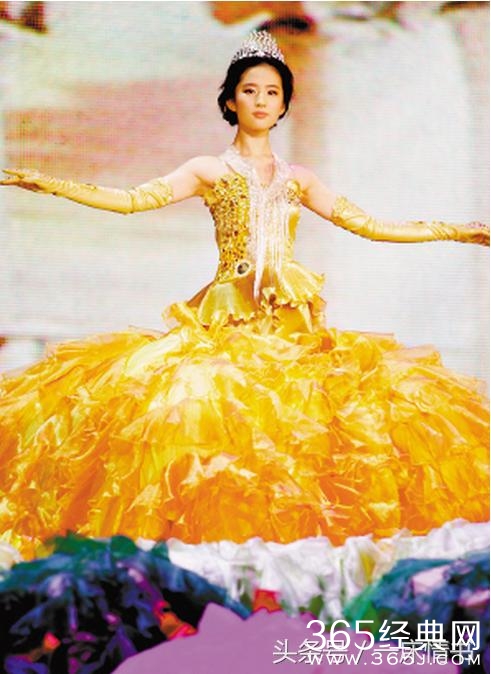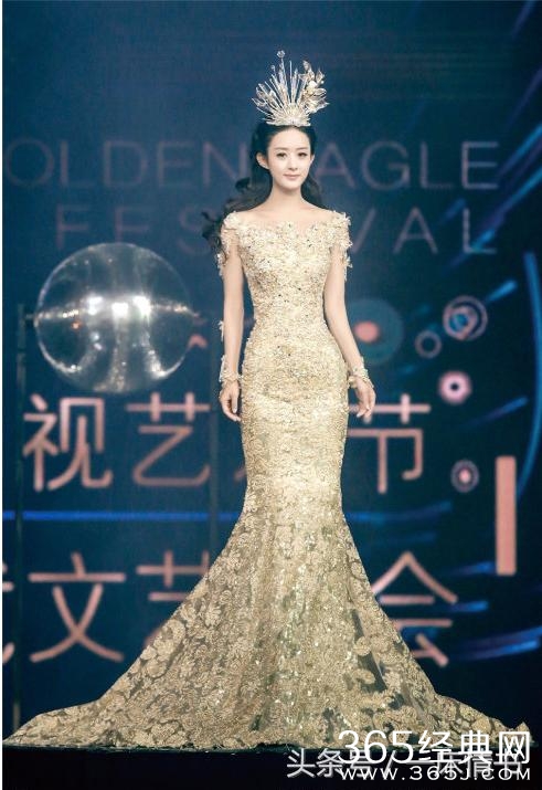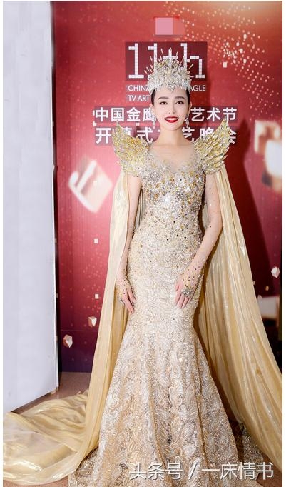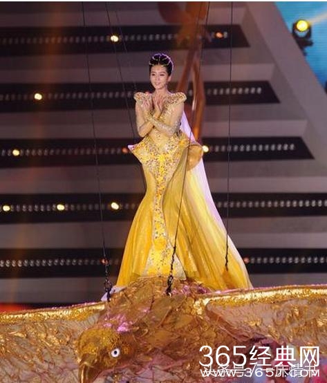 量身度做的金鹰礼服,再配以皇冠、项链、耳环,刘亦菲全身金光闪闪,大方、典雅溢满荧屏。