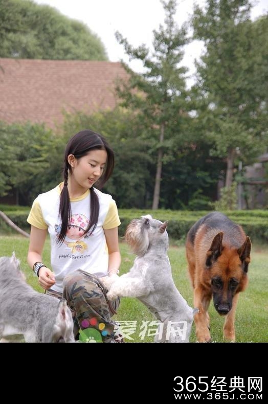 刘亦菲有3只雪纳瑞,还有只德牧。