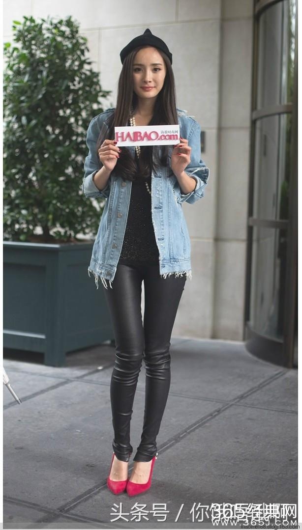 杨幂才是演艺圈的皮裤女王,最近一次在机场被拍到,皮裤搭配宽松的牛仔外套。
