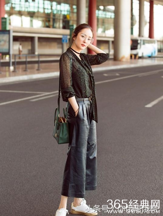 去时装周之前,在机场的摆拍,阔腿皮裤……