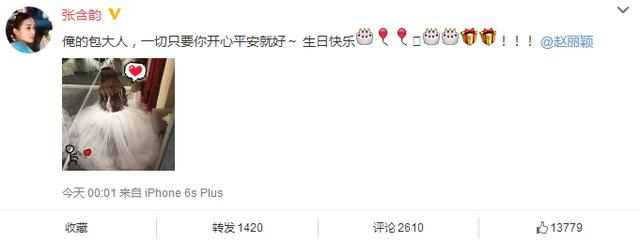 张含韵说:俺的包大人,一切只要你开心平安就好~生日快乐!!!@赵丽颖