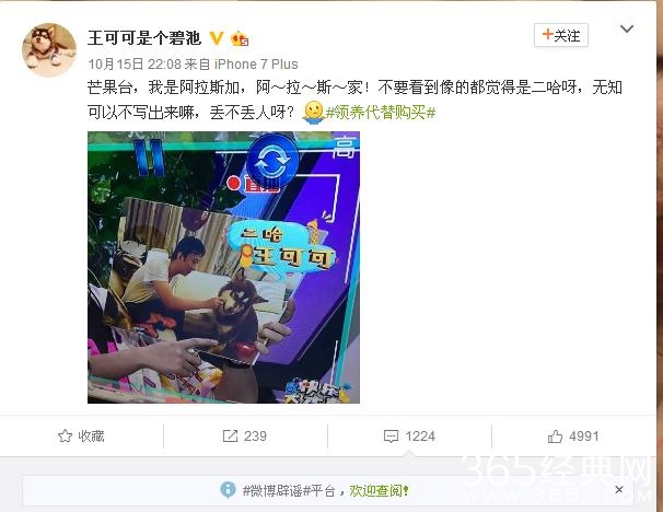 不过在最新一期的【快乐大本营】上,却将王思聪的爱犬王可可的品种搞混了,将阿拉斯加说成是二哈。