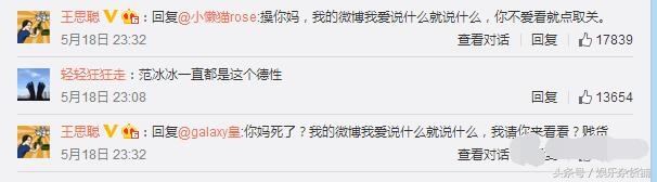 前段时间大骂范冰冰、张馨予,并且在评论里与粉丝对骂: