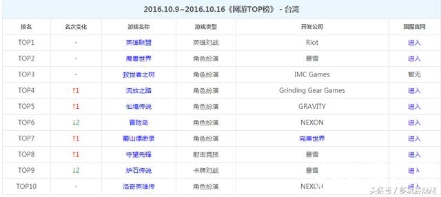 台榜方面榜方面,在台湾开始公测的《蜀山缥缈录》连续3周保持在榜单内,对于台湾榜单来说已经是新鲜血液。虽然《守望先锋》已经加入万圣节皮肤以及PVE内容,又有新英雄消息传出,不过还是不敌老三样《英雄联盟》、《魔兽世界》和《救世者之树》。以下为详细信息: