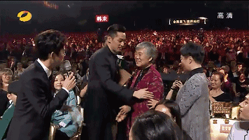 作为当晚女主持的宁静带着哭腔说得语无伦次:我不知道,为什么每次看到前辈,还在坚持工作,然后每一个工作都是那么的敬业,可能这词不是很合适……我不知道到了您这个年龄的时候我在做什么,因为我经常都在动摇,说我可不可以做点别的,我不要当这么久的演员……