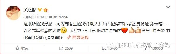 高考前发个微博,提醒大家带齐考试用品
