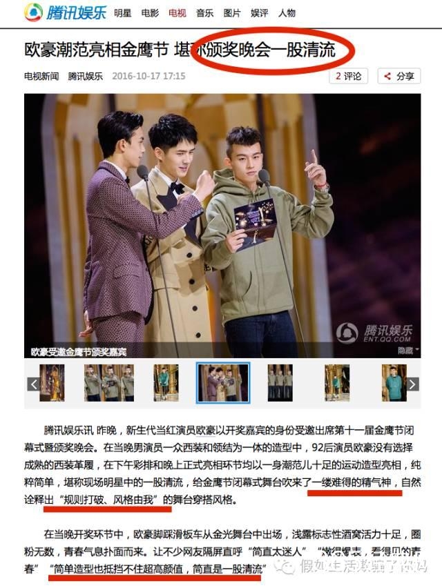 欧豪当天的服装就引发了不小争议