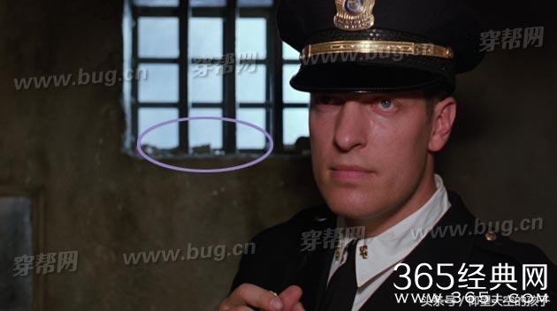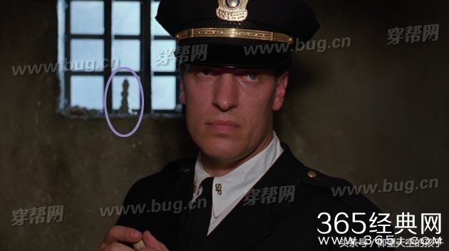 典狱长诺顿(Norton)带人搜查安迪(Andy)的房间,请注意赫德利(Hadley)身后的窗台。