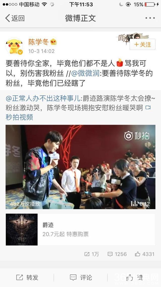 但是在看那位网友所说的:“要善待陈学冬的粉丝,毕竟他们已经瞎了“,这话好像骂的不是粉丝吧!