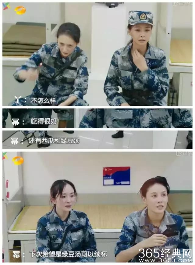 量体重的时候,杨幂机智地跟班长请示能不能脱外套称,因为外套重,还撒了个娇。这谁能拒绝啊?