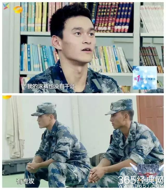 孙杨反倒是有奥运冠军的包袱或者说是傲骨更合适,提出了几次说我们第一天来这样的强度是不是太大了。教官开始再次走上了教育之路,说自从加入了军队,一年四季衣服就没有干过。但孙杨有点挑衅+幽默都存在的方式说我的泳裤也没有干过。