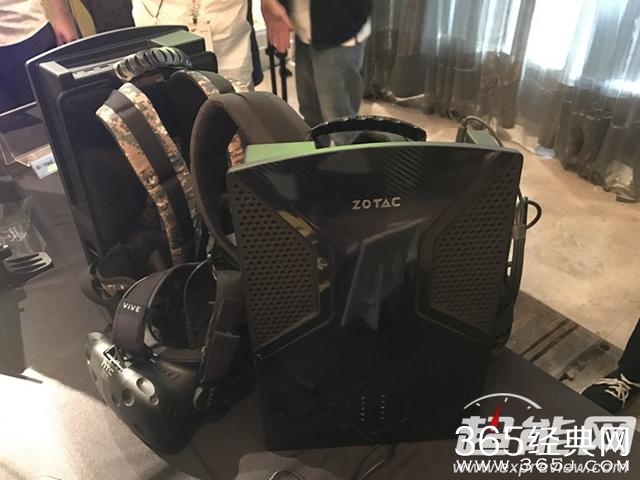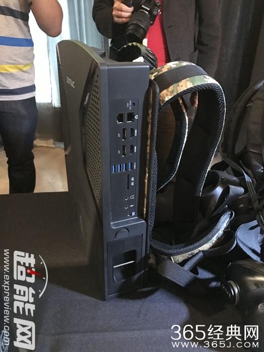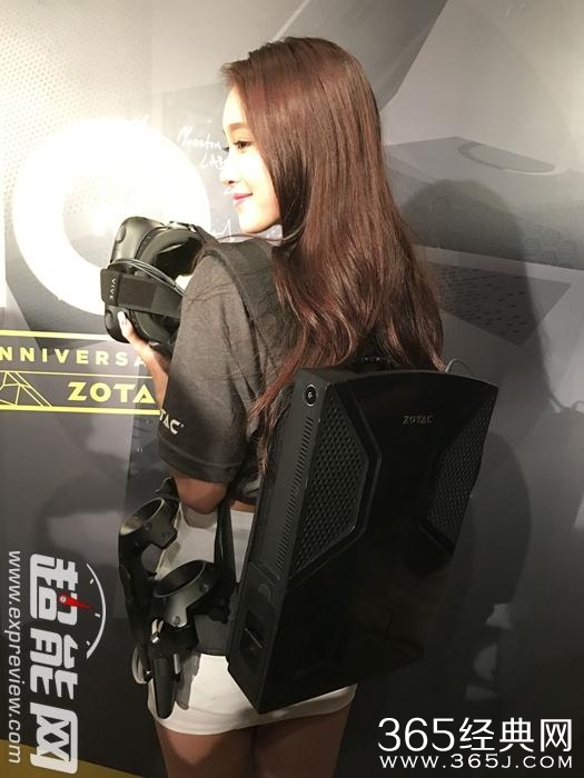 发布会产品体验中最引人注目的是其索泰VR GO背包式便携电脑。内置英特尔i5 6400T低电压CPU,既然要玩VR,显卡至少要GTX 1070起啦。背包内置有大容量电池,可以供给VR GO 2小时续航。VR GO背包式便携电脑带电池重量为4.9Kg,不过别忘了还要搭配个HTC VIVE头盔以及手柄的重量哦,不过胜在背包人体工学设计不错,询问现场的妹子说,重量可以接受,不会太累。