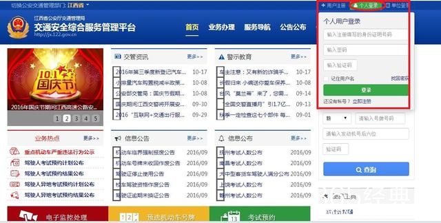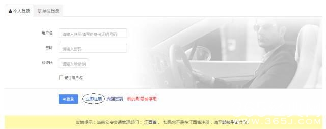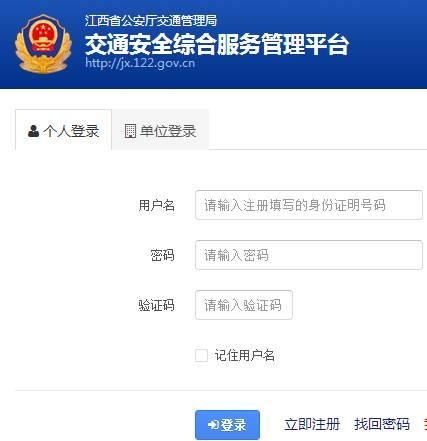 凡已在驾校报名且到赣州市公安局交警支队受理注册的市民,可进入江西省公安厅交通管理局交通安全综合服务平台(http://jx.122.gov.cn),用已收到个人用户申请注册的账号及密码,进行个人用户登录。