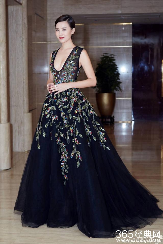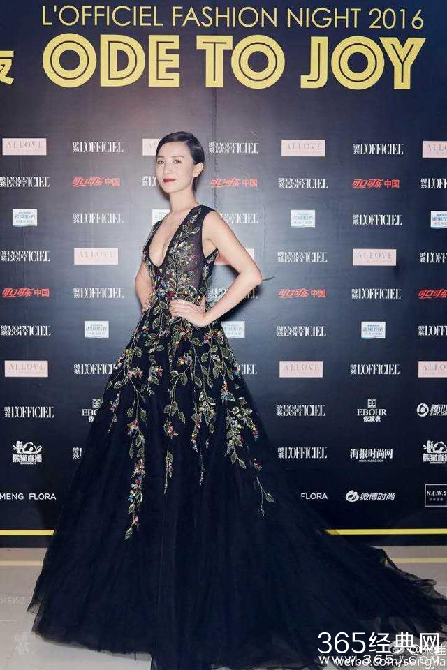 北京,30日,2016中国时装之夜红毯举行。小宋佳低胸印花长裙华贵性感 双球诱人