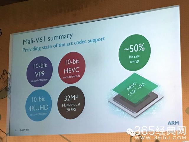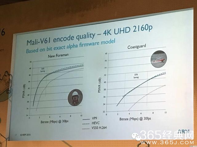 以PSNR值为42dB的高清图像为例,采用VP9编码的Mali-V61与采用HEVC的Mali-V61具有同样高效的传输,比采用H.264的Mali-V550节省了56%的比特率。Roger补充道,Mali-V61 VPU是唯一在单个可扩展IP包中同时集成了高质量HEVC和VP9编码功能的多重标准编解码器,为客户提供更多选择的空间。