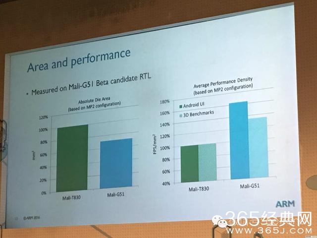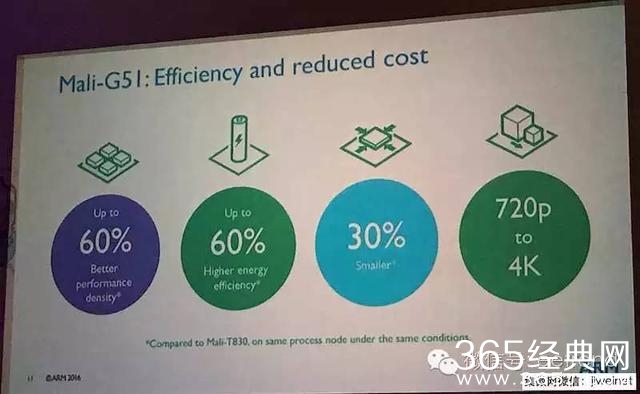 ARM高级产品经理Dan Wilson指出,Mali-G51是ARM迄今体积最小、最高效的、支持Vulkan的GPU,支持最高4K分辨率,预计2017年将集成至SoC中,产品应用则要等到2018年。与前代Mali-T830 GPU相比,Mali-G51可实现最高达60%的性能密度,能效提高最高也达到60%。同时,Mali-G51精简了30%的面积,降低制造成本,满足更高性能应用需求。