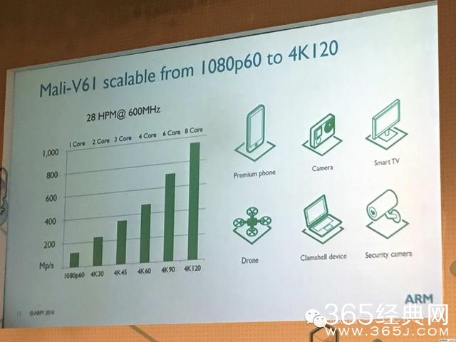 据ARM高级产品经理Roger Baker介绍,Mali-V61为实时视频应用提供最高效的4K直播流。它比上一代编解码器节省了50%的比特率,实现了高清内容的高效传输。Mali-V61具有灵活的可扩展性,能从单核上的1080p 60帧扩展到多核上的4K 120帧,能够实现从旗舰、主流到入门级不同移动设备上的最高清晰的流媒体。