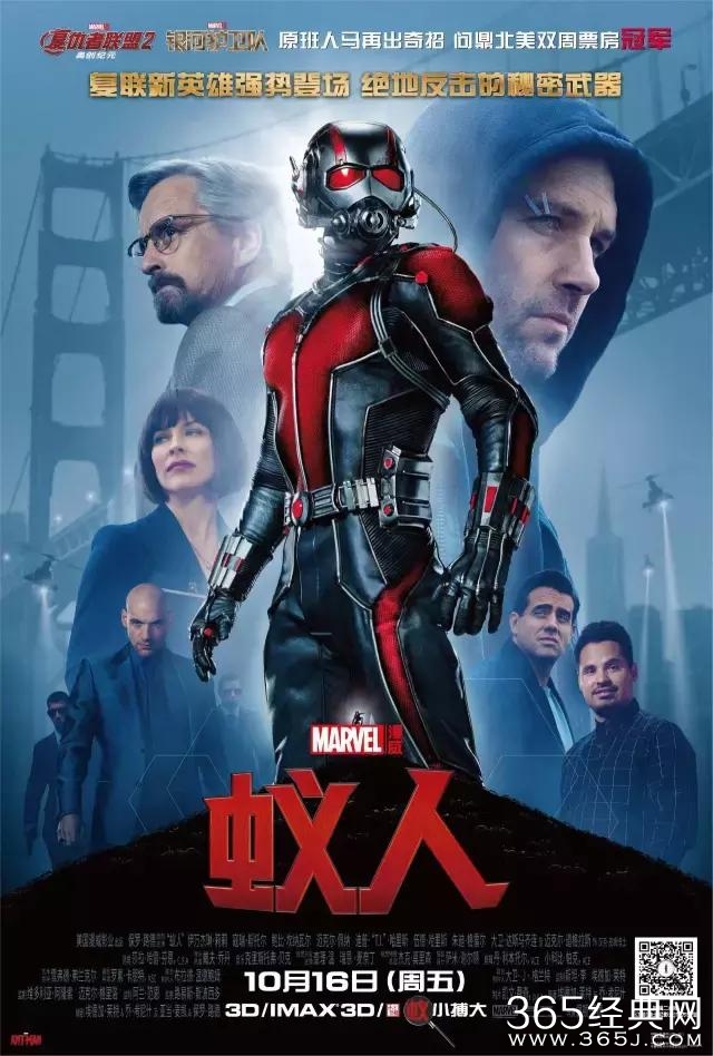 《蚁人》(Ant-Man)改编自漫威的经典超级英雄漫画,由埃德加·赖特执导,作为漫威电影宇宙第二阶段的收官之作面世。“蚁人”汉克·皮姆由漫威经典搭档斯坦·李和杰克·科比联手创造,于1962年初次在漫画中登场。作为一名出色的生化学家,他发现了一种可以将身体缩小至蚂蚁体积的微型原子,并制作一个特殊的头盔用以与昆虫交流。