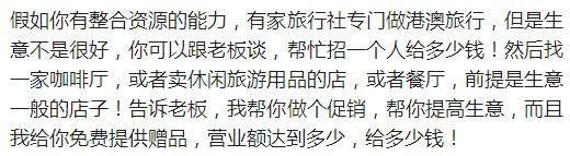 你满足任何一个条件,都可以实现空手套白狼的目的。当你挖掘不到其中任何一种资源 的时候, 就需要你将这些资源整合起来为我说用,