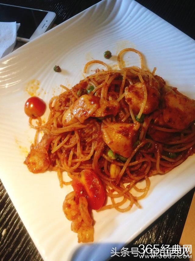 ⭐️ 番茄鲜虾意大利面 :最后才上的主食,鲜虾和番茄恰到好处的糅合在一起,酸甜的口感好吃。