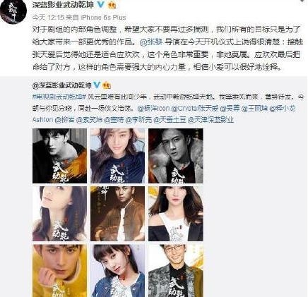 不过张天爱否认了抢角一说,并直言一开始就是女一号。