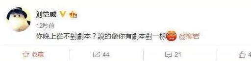 之后,网上曝出刘恺威微博怼柳岩的截图,“说的好像你有剧本对一样。”随后微博被删