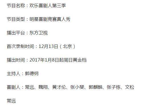 《欢乐喜剧人第三季》:苗阜出局,郭德纲主持,郭麒麟加盟