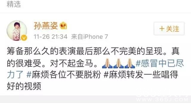 不过,孙燕姿因为得了重感冒,演唱出了点“车祸”。她专门发了微博道歉。