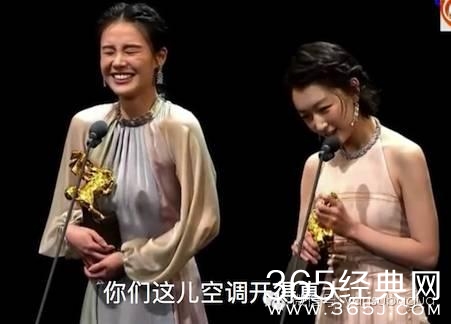乱七八糟一通高兴之后,周冬雨开始说参加颁奖礼又进展又冷,冻得腿抖,经纪人不许她穿披肩,评价金马奖是:“你们这儿空调开得真大。”