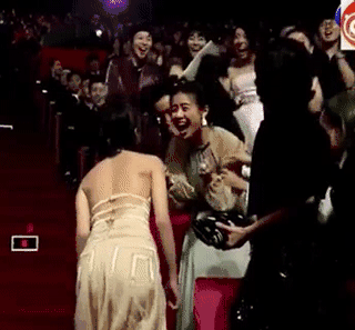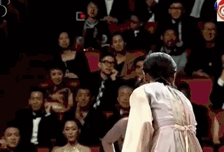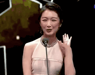 到这时她终于想起来感谢词,第一个感谢的是张艺谋,然后是陈可辛、曾国祥、合作伙伴,边念叨边说自己记性不好。念了一遍名字不知道怎么表达感情又给大家鞠一躬。