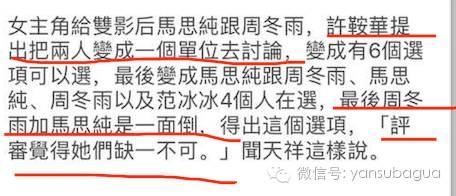 这个奖某种意义上也是对导演曾国祥的褒奖。周冬雨和马思纯今年都有失败的角色,可见她们作为演员需要调教。曾国祥调度出了她们最好的状态。演员觉得没怎么努力就演完了,更是导演功劳。