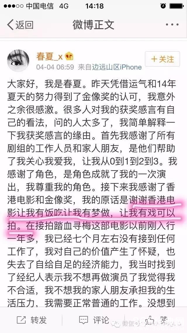 那天春夏说:“谢谢香港电影让我有饭吃,有梦做。”