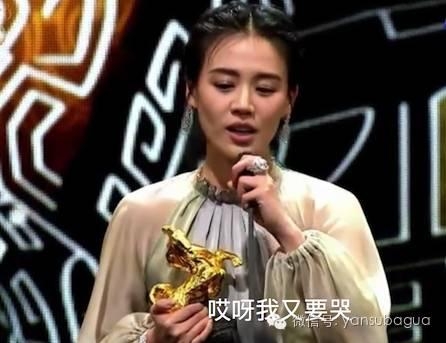 最后她说:“我们家没有一个人是做电影的,我觉得特别光宗耀祖。”举起了奖杯。
