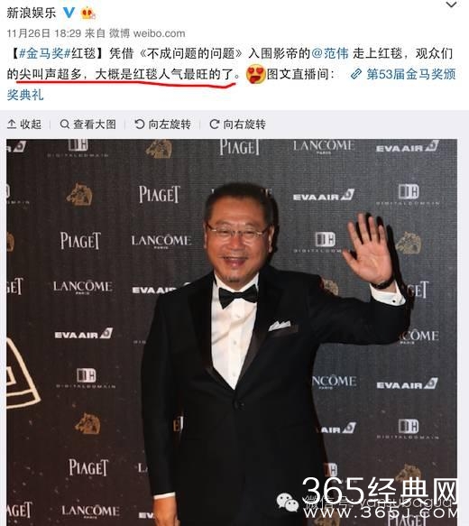 新浪娱乐说,范伟走上红毯,观众给了最多的尖叫。他才是红毯上人气最旺的人。