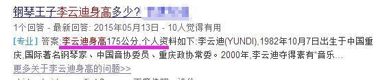 而钢琴王子李云迪身高,有网友回应是175cm。